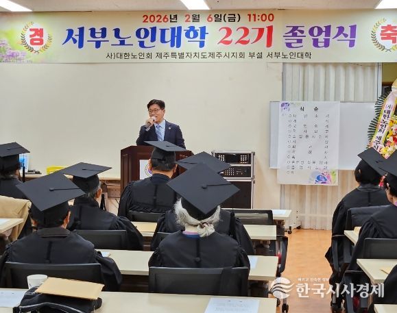 한국시사경제 노승선 기자 | 현원돈 제주시 부시장은 2월 6일 제주시 서부노인복지회관에서 열린 제22기 서부노인대학 졸업식에 참석해 어르신들께 존경의 마음을 전했다.