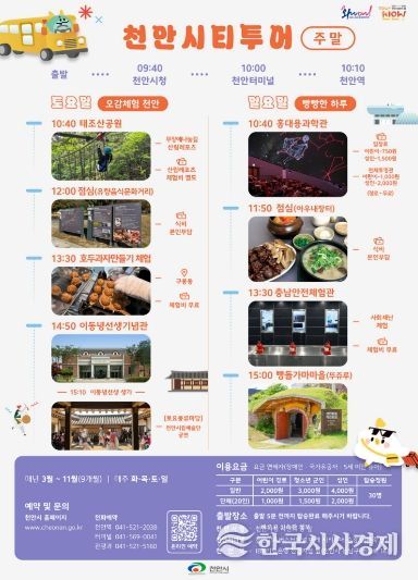 한국시사경제 충남취재본부 | 천안시가 3월부터 11월까지 ‘2026년 천안시티투어’를 본격적으로 운영한다고 9일 밝혔다.