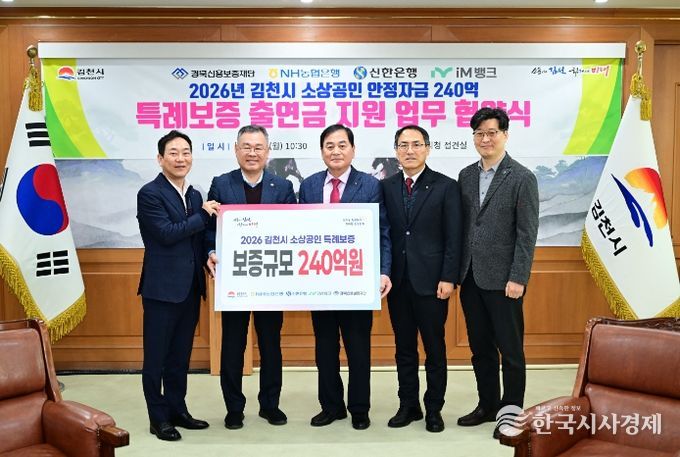 한국시사경제 경제팀 | 김천시는 관내 소상공인 경영 안정자금 지원을 위해 경북신용보증재단, NH농협은행, 신한은행, iM뱅크와 협약을 맺고 총 240억 원 규모의 소상공인 특례 보증 지원에 나선다고 9일 밝혔다.