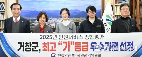 한국시사경제 경남취재본부 | 거창군은 국민권익위원회·행정안전부 공동 주관한 ‘2025년 민원 서비스 종합평가’에서 최고 등급인 ‘가등급’에 선정돼 전국 최고 수준의 민원 서비스를 인정받았다.