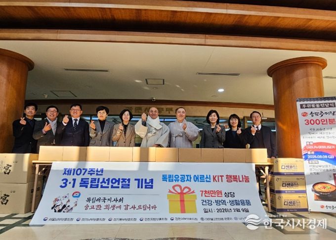 한국시사경제 문화팀 | 국가보훈부 인천보훈지청에서는 2월 9일 (사)나누며하나되기와 대한불교 천태종 관문사에서 주최한 3·1절 기념 국가유공자 행복나눔 전달식에 참석했다.