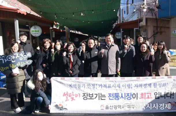 한국시사경제 울산취재본부 | 울산 동구는 민족 대명절 설을 맞이하여 2월 9일 오전 11시 전하시장에서 공무원, 시장 상인회 등 30여 명과 함께 전통시장 이용 캠페인 및 전통시장 장보기 행사를 했다.