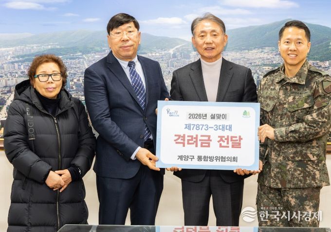 한국시사경제 사회팀 | 인천광역시 계양구 통합방위협의회는 민족 고유의 명절인 설을 맞아 9일, 구청 소회의실에서 제7873부대 3대대에 위문금을 전달하며 장병들을 격려했다.
