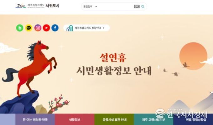 한국시사경제 노승선 기자 | 서귀포시는 다가오는 설 명절 연휴를 맞아, 시민들이 안전하고 편안한 명절을 보낼 수 있도록 시홈페이지를 통해 ‘설 연휴 시민생활정보’를 제공한다고 밝혔다.
