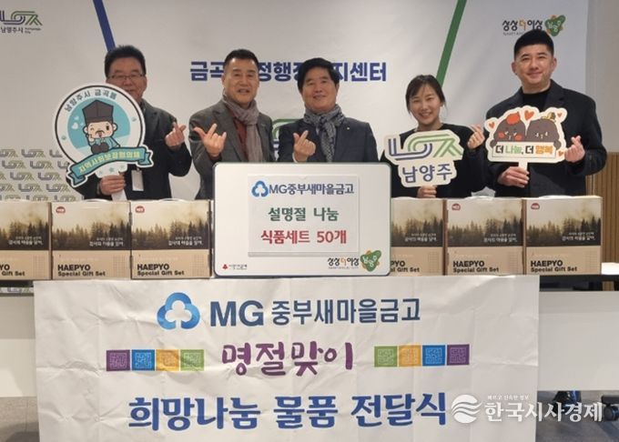 한국시사경제 경기북부취재본부 | 남양주시는 지난 9일 MG중부새마을금고가 지역 내 취약계층이 따뜻한 설 명절을 보낼 수 있도록 식품 선물 세트 50개를 금곡동 지역사회보장협의체에 기탁했다고 10일 밝혔다.