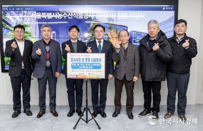 한국시사경제 기동취재팀 | 서울 강서구는 10일 서울농수산식품공사 강서지사(지사장 이봉준)로부터 설맞이 이웃돕기 성품을 전달받았다.