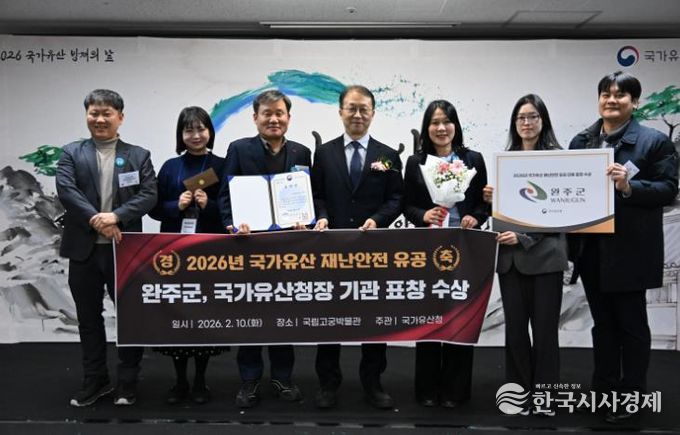 한국시사경제 김숙영 기자 | 완주군이 10일 서울 국립고궁박물관에서 전국 시군 중 유일하게 ‘2026 국가유산 재난 안전 유공’ 국가유산청장 기관 표창을 수상했다.