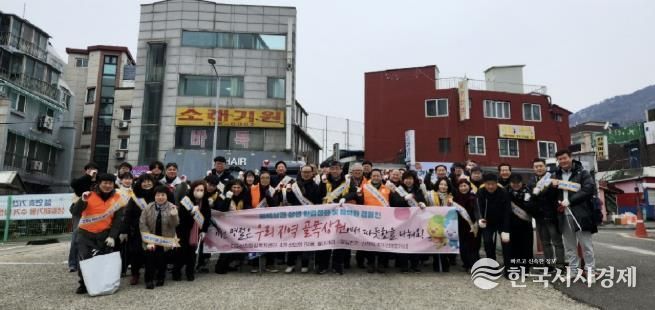 한국시사경제 경기취재본부 | 시흥시 대야·신천행정복지센터는 지난 2월 10일 대야ㆍ신천 원도심 상권 활성화를 위해 환경정화 활동과 상권 이용 홍보를 병행한 캠페인을 진행했다.