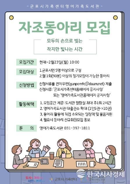 한국시사경제 사회팀 | 군포시가족센터 영어가족도서관(관장 박성희)에서 2026년 자조동아리를 모집한다.