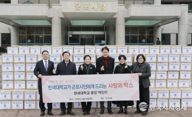 한국시사경제 사회팀 | 유난히 추운 겨울이지만, 군포시에는 이웃을 향한 정성이 모여 훈훈한 설 명절 분위기가 피어나고 있다. 한세대학교는 10일, 지역 내 취약계층의 넉넉한 명절을 위해 ‘사랑의 희망박스’ 350세트를 군포시에 전달하며 상생의 가치를 실천했다.