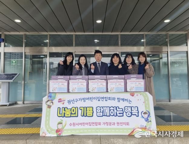 한국시사경제 사회팀 | 수원시어린이집연합회 가정분과 권선지회에서는 지난 10일 권선구를 찾아 떡국떡 60박스를 후원했다.