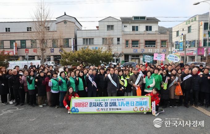 한국시사경제 사회팀 | 청도군은 지난 2월 11일 금천면 동곡시장에서 1회용품 사용 줄이기 실천 홍보 캠페인을 실시했다.