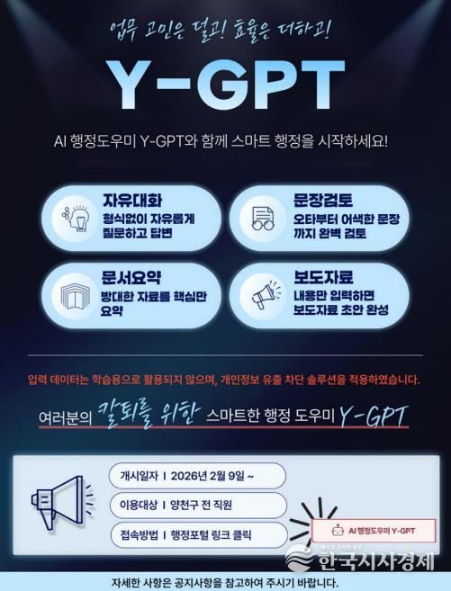 이기재 양천구청장은 “이번 ‘Y-GPT’ 도입은 디지털 전환 시대에 발맞춘 행정 혁신의 출발점”이라며 “단순·반복 업무는 AI가 처리하고, 공무원은 보다 창의적이고 주민 밀착형 업무에 역량을 집중함으로써 구민이 체감하는 행정서비스 품질을 높여가겠다”고 말했다.
