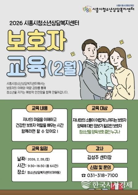 한국시사경제 경기취재본부 | 시흥시청소년청년재단 산하기관인 시흥시청소년상담복지센터가 보호자의 이해와 역할 강화를 통해 청소년을 지키는 예방적 안전망을 구축하고자 2026년부터 보호자 교육을 정기적으로 운영하고 있다.