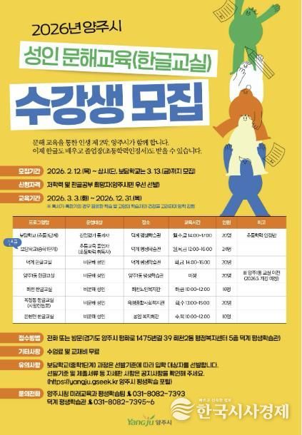 양주시 관계자는 “배움에는 늦은 때가 없는 만큼, 기초 문해교육이 필요한 시민이라면 주저하지 말고 성인 문해교실의 문을 두드려 주시길 바란다”고 말했다.