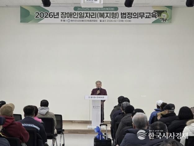 한국시사경제 경기북부취재본부 | 동두천시장애인단체총연합회는 장애인일자리(복지일자리) 참여자의 근로 권익 보호와 안전한 근무환경 조성을 위해 2026년 법정 의무교육을 실시했다. 이번 교육에는 참여자 103명이 참석했다.