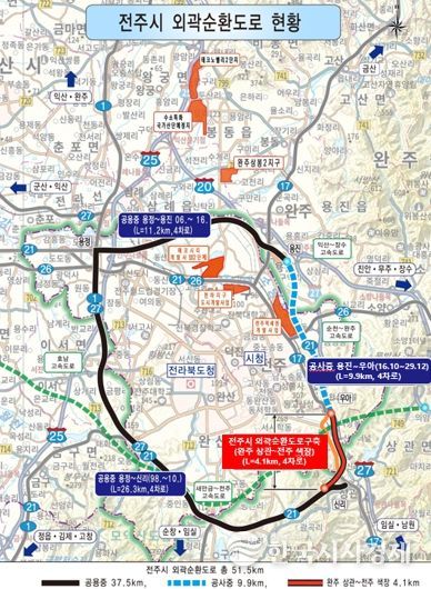 시는 전북특별자치도와 지역 국회의원, 전북연구원까지 참여하는 공조체계를 통해 전주 외곽순환도로망을 완성시켜 도심 교통량을 외곽으로 분산하고, 시군 간 접근성을 높일 예정이라고 18일 밝혔다.