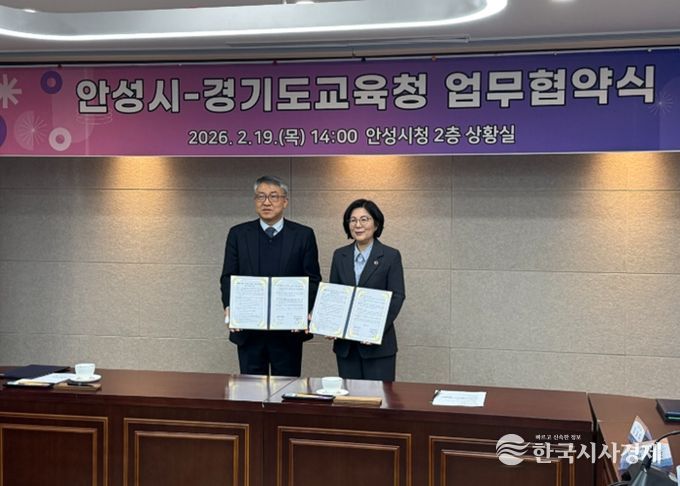 한국시사경제 경기취재본부 | 경기도교육청과 안성시는 2월 19일 안성시청에서 '안성미래교육협력지구와 경기공유학교 운영을 위한 업무 협약'을 체결했다.