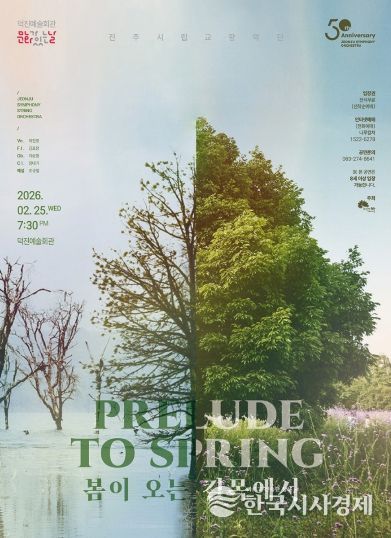 한국시사경제 윤경수 기자 | 전주시립교향악단은 오는 25일 덕진예술회관에서 2월 ‘문화가 있는 날’을 맞아 ‘봄이 오는 길목에서’ 공연을 선보일 예정이라고 20일 밝혔다.