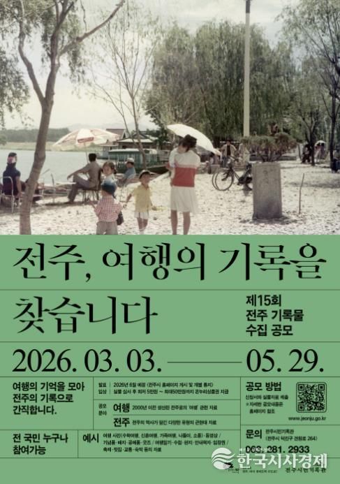 시는 오는 3월 3일부터 5월 29일까지 ‘전주, 여행의 기록을 찾습니다’를 주제로 ‘제15회 전주 기록물 수집 공모전’을 개최한다고 23일 밝혔다.
