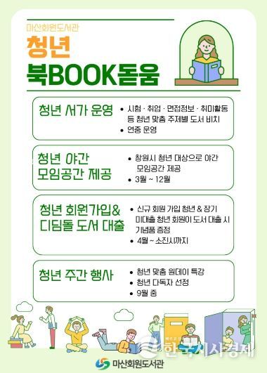 한국시사경제 노승선 기자 | 마산회원도서관에서는 창원시 청년이 도서관에서 미래를 설계하고 일상 속 건전한 독서생활을 지원하기 위해 ‘청년 북돋움’ 프로그램을 운영하고 있다.