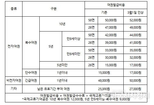 한국시사경제 문화팀 | 2026년 3월 1일부터 여권발급수수료가 2천원 인상된다.