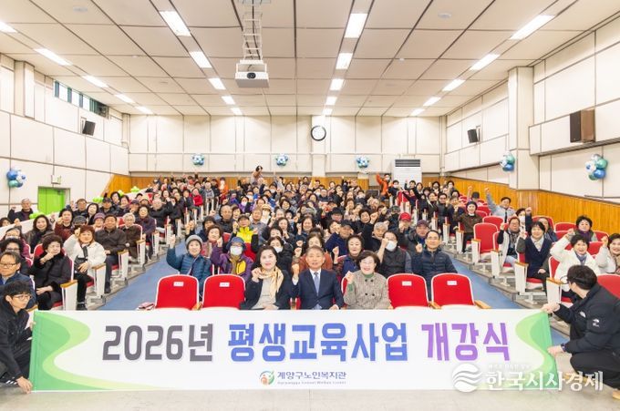 한국시사경제 사회팀 | 인천 윤환 계양구청장이 23일 계양구노인복지관에서 열린 ‘2026년 평생교육사업 개강식’에 참석해 어르신들의 새로운 배움의 출발을 응원했다.