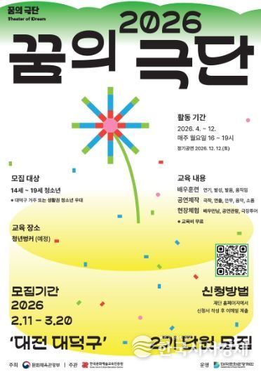 한국시사경제 대전취재본부 | 대전 대덕구는 대덕문화관광재단이 대덕구 거주 청소년을 대상으로 ‘2026 꿈의 극단 - 대전 대덕구’ 2기 청소년 단원을 모집한다고 밝혔다.