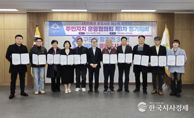 한국시사경제 기동취재팀 | 금천구는 2월 24일 구청 기획상황실에서 10개 동 주민자치회와 ‘2026~2027년 자치회관 운영 위·수탁 협약’을 체결했다고 밝혔다.