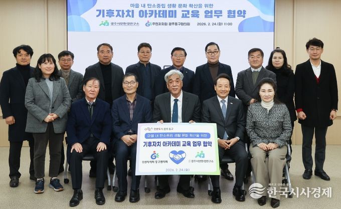 한국시사경제 사회팀 | 광주 동구는 지난 24일 주민자치회 동구협의회, (사)광주시민환경연구소와 기후위기 대응 역량 강화를 위한 업무협약을 체결하고, 관내 13개 동을 대상으로 ‘기후자치 아카데미’를 운영했다고 밝혔다.