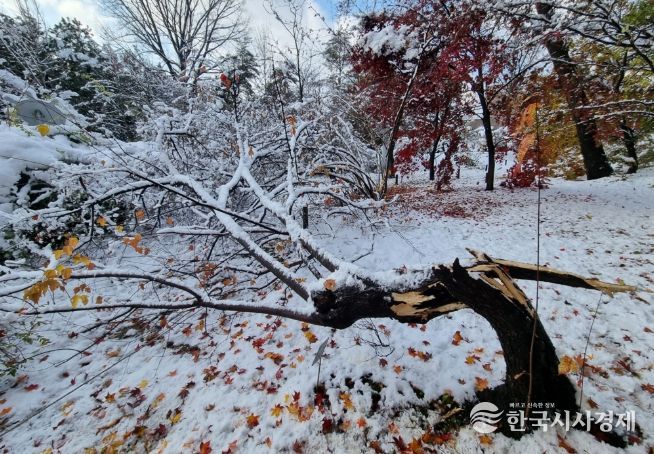 한국시사경제 사회팀 | 산림청 국립산림과학원은 지난 2024년 11월 25일~29일 기록적인 폭설로 피해를 입은 홍릉시험림 수목을 정밀 조사하고 수종별 피해 특성과 과학적 대응 방안을 발표했다.