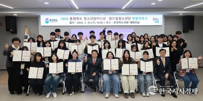 한국시사경제 노승선 기자 | 2026년 충청북도 청소년참여위원회 및 꿈드림 청소년단 위촉식이 2월 25일 충청북도의회 대회의실에서 개최됐다.