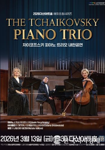 한국시사경제 기동취재팀 | 남양주시는 남양주문화재단이 오는 3월 13일 다산아트홀에서 해외초청시리즈 ‘차이코프스키 피아노 트리오’ 첫 내한 공연을 개최한다고 26일 밝혔다.