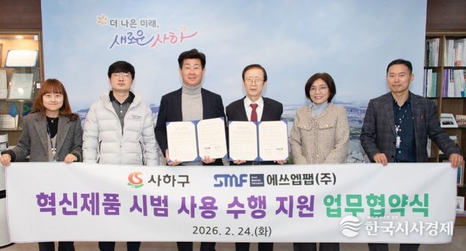 한국시사경제 김숙영 기자 | 부산 사하구는 에쓰엠팹㈜(대표 김재일 동아대학교 신소재공학과 교수)와 지난 24일 조달청 혁신제품 시범사용 지원을 위한 업무협약(MOU)을 체결했다. 이번 협약은 에쓰엠팹㈜가 개발한 동파 방지 제품 ‘안(安)동파’ 수도꼭지를 한파 취약계층 가구와 복지시설 등에 설치해 겨울철 한파로 인한 수도시설 동파 피해를 예방하기 위해 추진됐다.