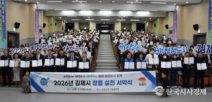 한국시사경제 김숙영 기자 | 김제시는 3일 시청 대강당에서 전 직원을 대상으로 ‘2026년 청렴 실천 서약 및 결의대회’를 진행했다고 밝혔다.