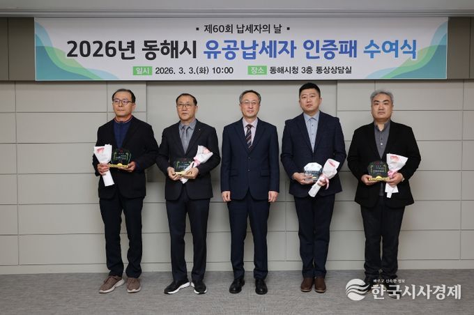 한국시사경제 권충언 기자 | 동해시는 3월 3일 '제60회 납세자의 날'을 맞아 시청 통상상담실에서 유공납세자 인증패 수여식을 열고 성실납세자들에게 감사의 뜻을 전했다.