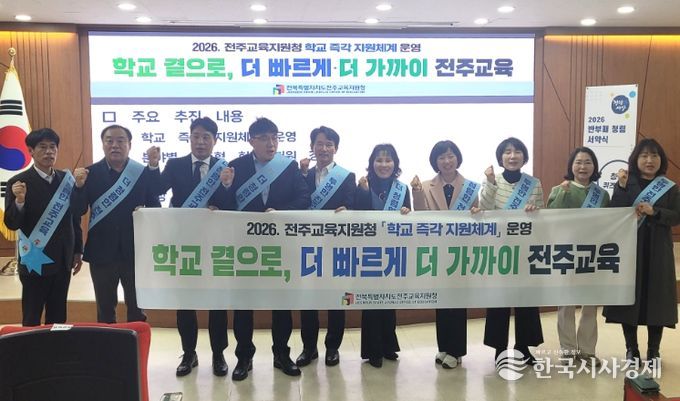 전주교육지원청은 ‘학교 곁으로, 더 빠르게·더 가까이 전주교육’을 슬로건으로 △학교 요청 사항 즉각 대응 △24시간 이내 현장 방문 지원 △분야별 맞춤형 지원 강화 △현장 민원 신속 처리 체계를 구축한다.