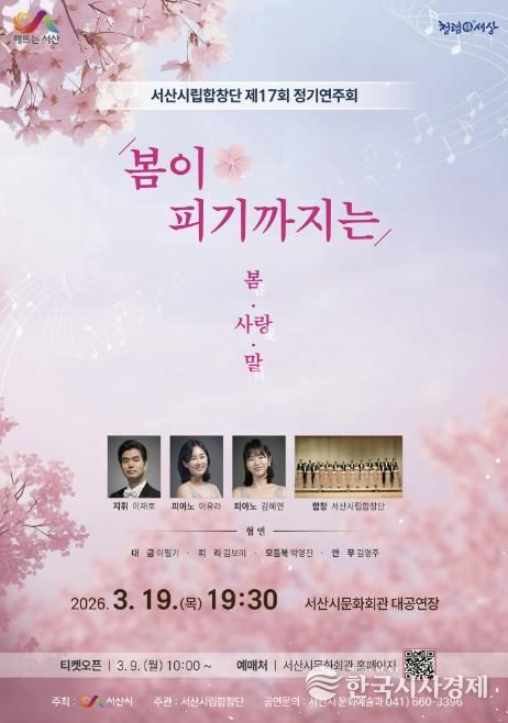 한국시사경제 충남취재본부 | 충남 서산시는 오는 3월 19일 오후 7시 30분 문화회관 대공연장에서 서산시립합창단 제17회 정기연주회 ‘봄이 피기까지는’이 개최된다고 밝혔다.