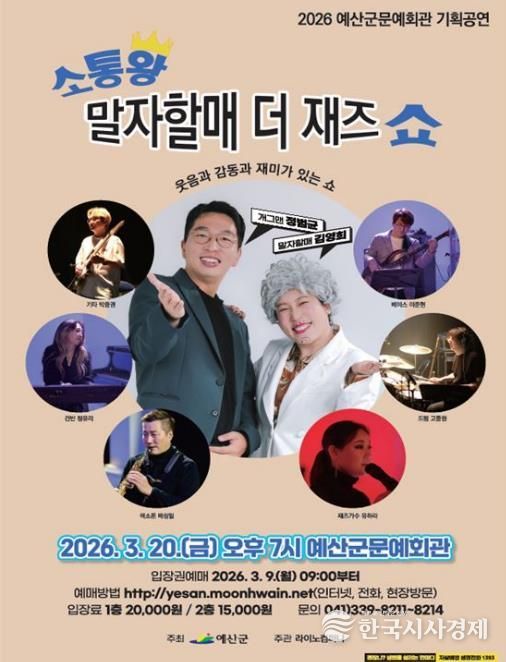 한국시사경제 충남취재본부 | 예산군은 오는 3월 20일 저녁 7시 문예회관 공연장에서 ‘소통왕 말자할매 더 재즈 쇼’ 토크 콘서트를 개최한다고 밝혔다.