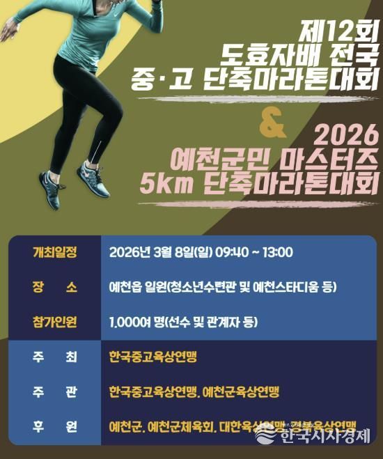 한국시사경제 권충언 기자 | 예천군은 오는 8일 오전 10시부터 예천읍 일원에서 '제12회 예천 도효자배 전국 중·고 단축마라톤대회' 및 '2026 예천군민 마스터즈 단축마라톤대회'를 개최한다고 밝혔다.
