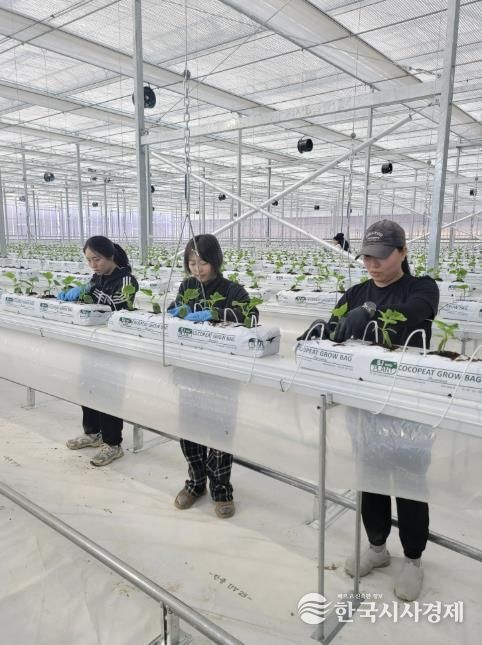 한국시사경제 충북취재본부 | 충북 괴산군은 청년 농업인 임대형 스마트팜 입주자를 선발하고 지난 28일 오이 첫 정식을 시작으로 본격적인 운영에 들어갔다고 5일 밝혔다.