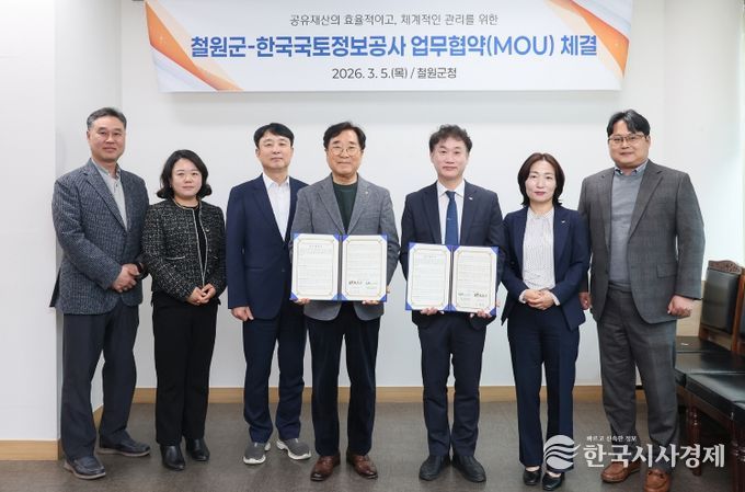 한국시사경제 권충언 기자 | 철원군은 3월 5일 철원군청에서 한국국토정보공사(LX) 강원지역본부와 ‘공유재산 정밀 실태조사 업무협약(MOU)’을 체결했다.