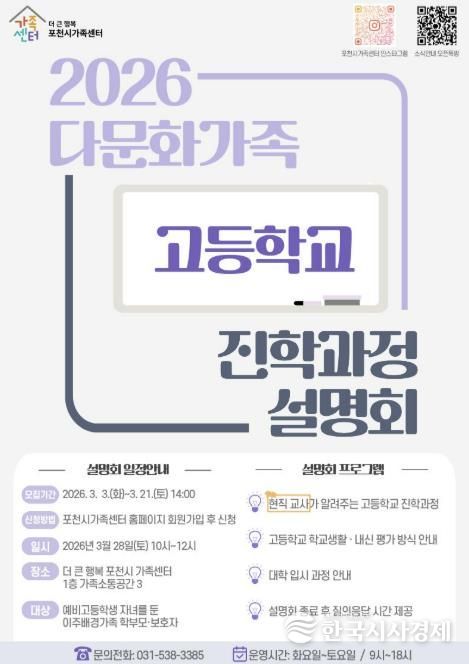 한국시사경제 경기북부취재본부 | 포천시 직영 더 큰 행복 포천시가족센터가 오는 28일, '2026 다문화가족 고등학교 진학과정 설명회'를 개최한다.