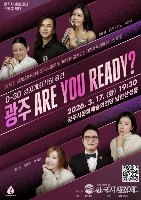 한국시사경제 이정이 기자 | 광주시문화재단은 오는 17일 ‘제72회 경기도체육대회 및 제16회 경기도장애인체육대회 2026 광주’의 성공 개최를 기원하고 대회 개막 30일 전을 기념하는 ‘광주 ARE YOU READY?’ 공연을 개최한다고 6일 밝혔다.