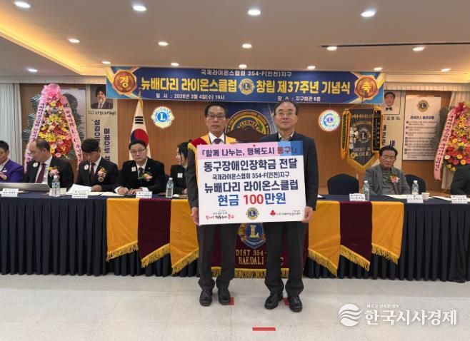 올해 창립 37주년을 맞은 인천지구 뉴배다리 라이온스클럽은 꾸준히 지역사회 봉사와 나눔 활동을 이어오고 있으며, 이번 기부 역시 교육 기회의 확대와 사회적 약자 지원을 위한 취지에서 마련됐다.
