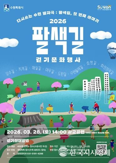한국시사경제 사회팀 | 수원특례시가 ‘2026 팔색길 걷기 문화행사’에 참여할 시민 400명을 3월 20일까지 선착순으로 모집한다.