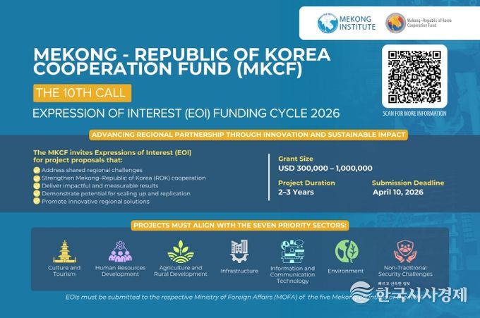 한국시사경제 해외팀 | 외교부는 3월 6일부터 4월 10일까지 제10차 한-메콩 협력기금(MKCF, Mekong-Korea Cooperation Fund) 사업 선정 공모를 진행한다.