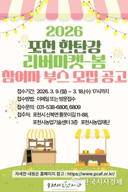 한국시사경제 경기북부취재본부 | 포천시농업재단은 오는 5월 한탄강 생태경관단지에서 열리는 ‘2026년 포천 한탄강 리버마켓-봄’ 행사에 참여할 부스 운영자를 공개 모집한다.