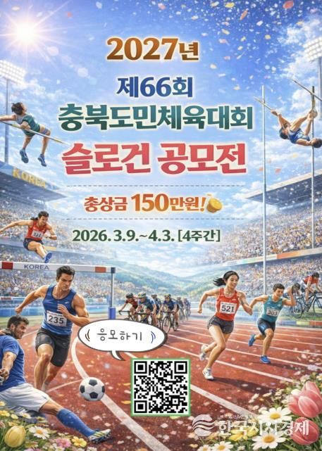 한국시사경제 오영주 기자 | 충북 보은군이 2027년 보은에서 개최되는 '제66회 충북도민체육대회'의 성공적인 개최와 참여 분위기 조성을 위해 대회 슬로건 공모전을 진행한다고 11일 밝혔다.