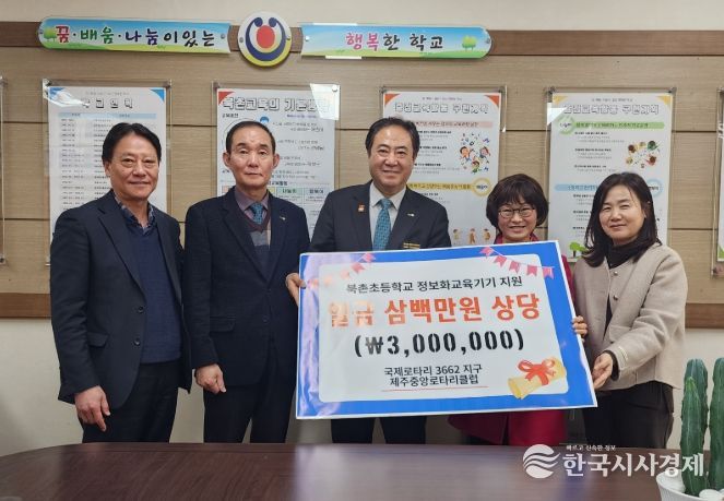 한국시사경제 노승선 기자 | 제주도교육청 북촌초등학교는 9일 국제로타리3662지구 제주중앙로타리클럽으로부터 약 300만 원 상당의 정보화 교육기기(복합기)를 학교발전기금으로 기탁받았다.